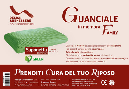 I guanciali della Linea FAMILY sono Dispositivi medici di Classe I E garantiscono una perfetta postura del tratto cervico-dorsale durante il sonno.