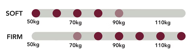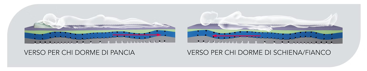 Le persone possono essere magre o robuste e a ogni corporatura fisica deve corrispondere un materasso con una rigidità adeguata. Per tale motivo i materassi Dual Comfort offrono la possibilità di avere due lastre dello stesso modello con rigidità diversa: una lastra soft e una lastra firm da scegliere a seconda del peso corporeo. In questo modo, seguendo delicatamente le forme del corpo e riducendo al minimo i punti di pressione si previene la tensione della colonna vertebrale e delle articolazioni favorendo la circolazione sanguigna.